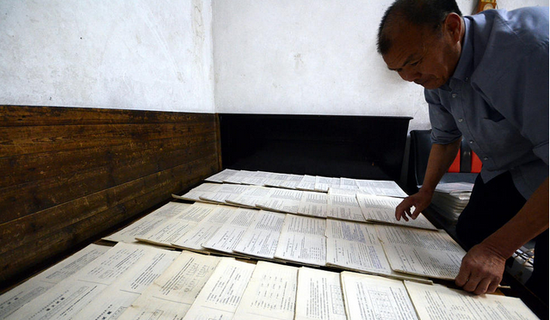 甘福保說,收藏高考試卷是一種情懷,他會(huì)一直堅(jiān)持下去。圖為甘福保收藏的高考試卷。