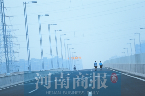 河南商報記者了解到,這一段高架橋?qū)儆诰V快速路二期南延工程穿過南三環(huán)京廣路立交的一部分,該橋面最高處距離地面22.94米。按照計劃,京廣快速路二期工程2014年年底前竣工,但如今京廣快速路二期南延工程仍未竣工。南邊道路未竣工,已建好的京廣快速路與南三環(huán)交叉的互通式立交橋橋面也就閑置了,成了市民休閑的好去處。據(jù)媒體報道,京廣快速路二期南延工程預(yù)計將于今年10月份全線通車。