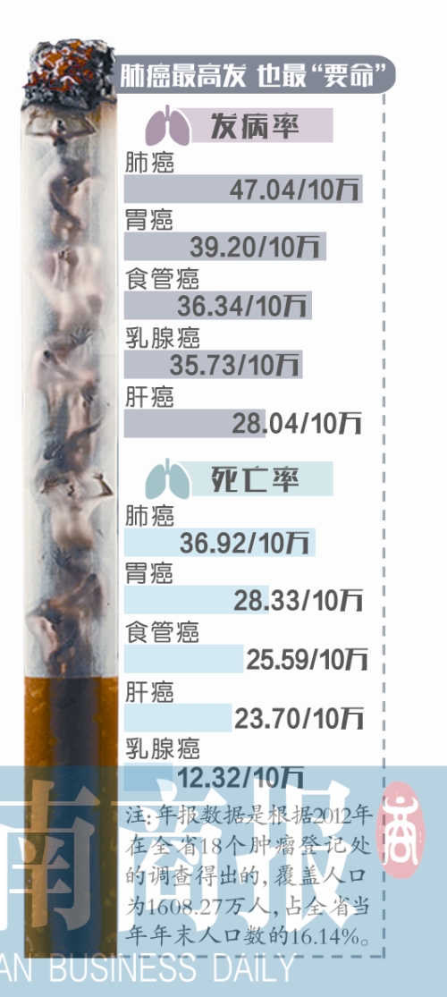 《2015年河南省腫瘤登記年報》出爐 肺癌發(fā)病死亡率居首 制圖/鄭萌