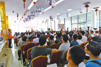 昨天下午1點(diǎn)半,中州大道與柳林東路交叉口西北角上汽車享汽車服務(wù)廣場(chǎng)車享拍鄭州拍賣服務(wù)中心,500名競(jìng)拍人熱情高漲,等候鄭州第二次公車拍賣正式開(kāi)始。