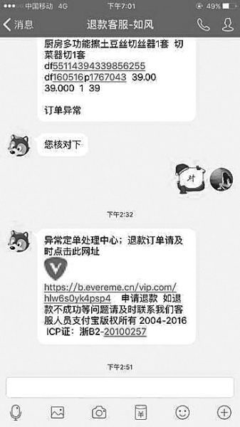 “退款不是直接可以退還到綁定的銀行卡嗎?”小帆有些疑惑。聽出小帆質(zhì)疑的意思之后,對方直接一口氣報出了小帆的個人信息,包括姓名、手機號、郵寄地址、所購商品的單號、下單的時間等。男子讓小帆加了一個QQ號,號碼名字叫“退款客服-如風”,并將小帆的訂單信息發(fā)給她。見這一狀況,小帆放松了戒備。