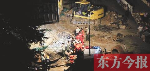 事件:疑為地下自來水管漏水加上暴雨,發(fā)生塌方,“4人墜坑兩人獲救”,另兩人一直在搜救中