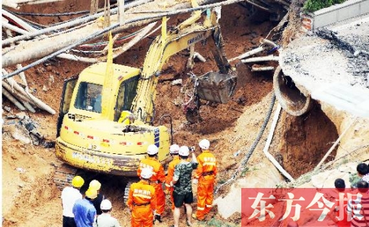 塌方發(fā)生時,一男一女被民警和熱心市民救出。目擊者稱,坑中仍有一名女士和小孩,但警方經(jīng)過排查,除了名叫張帆的女士,尚未發(fā)現(xiàn)有人員失蹤。今報三批記者輪班蹲守現(xiàn)場,截至3日2時,救援在經(jīng)歷了近30個小時后,尚未找到張帆?!鯑|方今報記者 夏萍 見習(xí)記者 靳亞東 宋迎迎 攝影 首席記者 袁曉強 張曉冬 沈翔 邱琦
