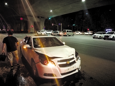 目擊者稱,雪佛蘭就是肇事車輛,司機已被控制在警車內(nèi),下車時還掛的是D擋。