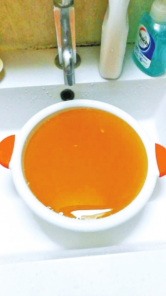 昨天下午6點(diǎn),記者從薛先生處得知,他家里的水質(zhì)比12日晚與13日中午清了不少,但仍帶有一點(diǎn)黃色。