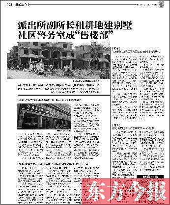 12月20日,東方今報(bào)以《派出所副所長(zhǎng)租耕地建別墅 社區(qū)警務(wù)室成“售樓部”》為題,報(bào)道了項(xiàng)城市一派出所副所長(zhǎng)租耕地建別墅銷(xiāo)售一事。報(bào)道刊發(fā)后,引起項(xiàng)城市委、市政府高度重視。昨日,記者從項(xiàng)城市委宣傳部獲悉,該副所長(zhǎng)被開(kāi)除公職,項(xiàng)城市委、市政府成立聯(lián)合調(diào)查組,對(duì)該區(qū)域開(kāi)發(fā)事件進(jìn)行拉網(wǎng)式排查。