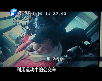 這是發(fā)生在鄭州市B12路公交車上的監(jiān)控視頻畫面,上午十點多,車廂內(nèi)的乘客很多。