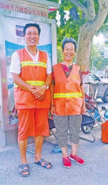 今年62歲的她,老家在周口淮陽(yáng)縣曹河鄉(xiāng)任莊村。她說(shuō),她和老伴任新嶺都是環(huán)衛(wèi)工,工作地點(diǎn)都在金水路,主要負(fù)責(zé)金水路路北從英協(xié)路口到興亞建國(guó)飯店門(mén)口噴泉處的路面保潔。