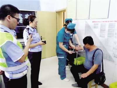 涉嫌酒駕司機接受血樣抽取等候進(jìn)一步處理