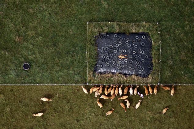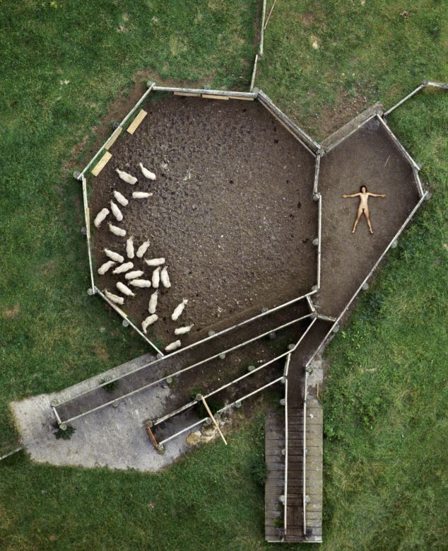 據(jù)悉,1984-1987年間,約翰利用直升機(jī)航拍了一組妻子的裸體照片。妻子在農(nóng)田、養(yǎng)豬場(chǎng)、機(jī)場(chǎng)跑道、海邊、鐵軌及移動(dòng)的汽車(chē)上一絲不掛,舒展著四肢。他說(shuō):“在那些地點(diǎn)拍攝裸體照片,可以反襯出人類(lèi)在大千世界的渺小和微不足道。”
