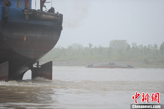 5月17日凌晨,長江無為境內(nèi)的白茆水道發(fā)生一起三艘外地船舶碰撞事故,造成7人失蹤。中新社發(fā) 張婭子 攝