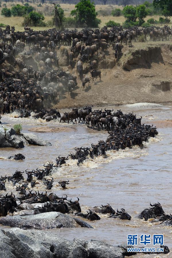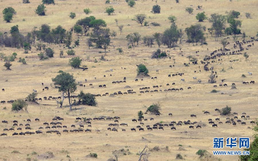這是8月17日在坦桑尼亞塞倫蓋蒂國家公園內(nèi)拍攝的角馬遷徙隊(duì)伍。每年7月至9月是坦桑尼亞的旱季,為了追逐水源和青草,以角馬和斑馬為主的數(shù)以百萬計(jì)的食草動物從塞倫蓋蒂向肯尼亞馬賽馬拉遷徙。這場“地球上最壯觀的動物大遷徙”全程超過1000公里,動物在往返途中需兩次渡過鱷魚出沒、危機(jī)重重的馬拉河。新華社記者張平攝