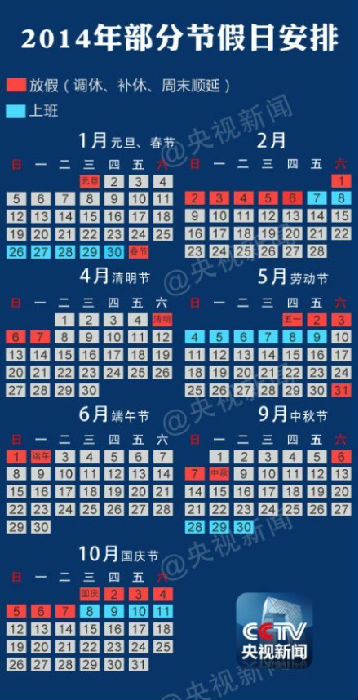 昨日,2014年節(jié)假日放假安排公布。消息發(fā)布后,已有網(wǎng)友迅速根據(jù)新的放假安排計(jì)算出2014拼假攻略,總共只需10天年假,即可將2014的元旦、春節(jié)、五一和十一假期變長。