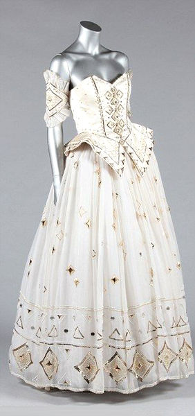 據(jù)悉,該款禮服正是出自王妃曾經(jīng)的婚紗設(shè)計(jì)者伊曼紐爾夫婦(David&Elizabeth Emanuel)之手。該禮服在1986年時(shí)被推出,是一條飾滿了金片、水晶和珠串的精美華服。由于王妃曾在較短時(shí)間內(nèi)三次穿著該禮服出席公眾場(chǎng)合,因此世人皆認(rèn)定這是王妃最鐘愛的服裝。