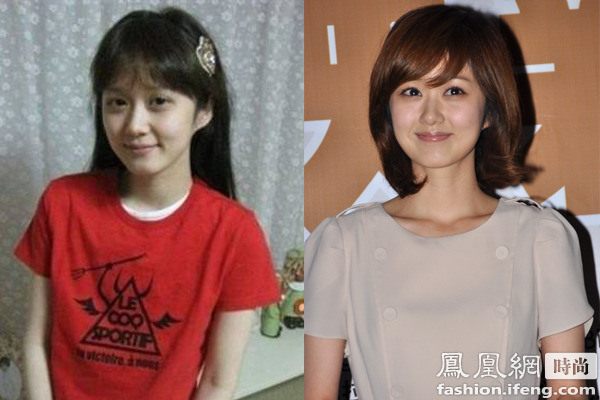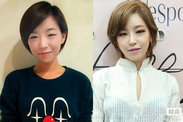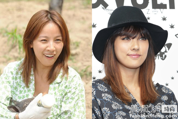 性感女神李孝利素顏也不會顯老,只是眼睛看著無神,化妝后加上空氣劉海的襯托一下子變年輕了。
