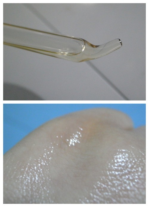 因?yàn)橐朁S醇怕光怕熱,為了有效的避光避熱,避免精華液成分中維他命與空氣發(fā)生氧化而變質(zhì),所以這款精華液采用深藍(lán)色的玻璃瓶身,膠皮滴管式設(shè)計(jì)。