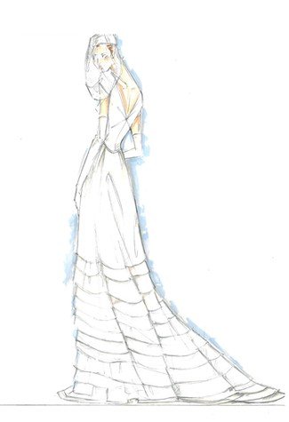 這種傳統(tǒng)款式的婚紗的特點(diǎn)是合體的上身,收緊的腰部以及飽滿的裙子。腰線可以恰好在腰部,也可以略低一些,甚至可以放到接近臀部的位置。這種款式的婚紗都配有定型用的襯裙。