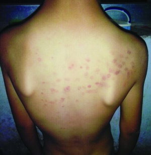 10月8日,謝女士在給小韋洗澡時(shí),發(fā)現(xiàn)孩子的后背上都是紅斑,像是被什么硬東西戳傷的。從謝女士提供的照片可以看到,小韋的后背上是成片的紅斑,記者粗略地?cái)?shù)了一下,紅斑超過(guò)50個(gè)?!爱?dāng)時(shí)我問(wèn)他是怎么搞的,孩子也不說(shuō),我以為是在學(xué)校玩摔倒弄的,就沒(méi)再追問(wèn)。”