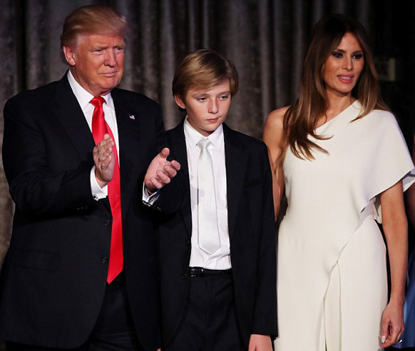 圖中為特朗普(左)、梅拉尼婭(右)和他們的兒子巴倫(中)。(網(wǎng)頁截圖)
