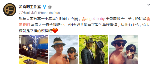 今晨,Angelababy在香港順產生子,黃曉明及雙方家人提前抵港并全程陪護母子左右。夫婦二人一起幸福迎來了新生命的降臨。