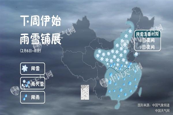 不過,今天開始隨著一股冷空氣影響我國,中東部將出現(xiàn)大范圍雨雪天氣。中央氣象臺預(yù)計(jì),2月6日至8日夜間,西北地區(qū)東部、華北、黃淮中西部將有小到中雪,陜西關(guān)中、河南南部、湖北西北部、安徽沿淮地區(qū)、江蘇中北部等地有雨夾雪或雨夾雪轉(zhuǎn)雪,上述局部地區(qū)有大雪;西南地區(qū)東部、漢水下游、江淮、江南和華南等地有小到中雨。