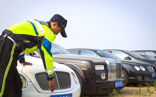 昨日,在沈陽市公安局沈河分局違章違法車輛停車場,勞斯萊斯、賓利等平時(shí)難得一見的豪車卻排成了排,它們皆因沒有正規(guī)“身份證”而被查扣。
