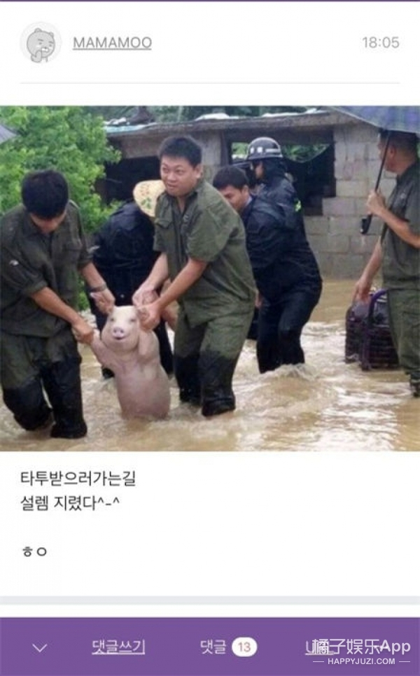 這頭洪水中的happy pig至此成了世界級的網(wǎng)紅,國外網(wǎng)友也開始了各種PS: