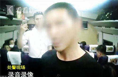 南京鐵路公安處乘警支隊(duì)民警蔣偉:“嫌疑人多次推搡我們的列車工作人員,甚至揮拳過去打我們列車長,列車長因?yàn)榘ち舜?,情緒比較失控,一度控制不住已經(jīng)哭起來了。”