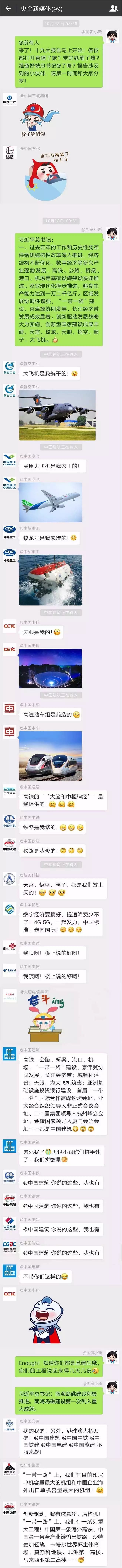 震驚!十九大開(kāi)幕當(dāng)天,一份意外流出的群聊記錄火爆了… 2017-10-23 16:03 來(lái)源:人民日?qǐng)?bào) 震驚!十九大開(kāi)幕當(dāng)天,一份意外流出的群聊記錄火爆了… 不忘初心跟黨走 青春建功新時(shí)代