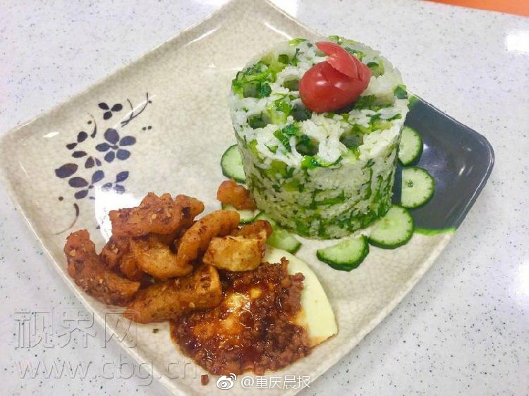 重慶一高校食堂再出神作,這次食堂師傅們用模具把米飯制作成了蜂窩煤的模樣,加上米飯采用的是紫米,蒸熟后的模樣簡直與真的蜂窩煤一模一樣!搭配一葷一素的配菜,這樣一套營養(yǎng)豐富、外觀搶眼的“蜂窩煤”套餐售價(jià)11元,自上周在學(xué)校推出以來很快就受到了同學(xué)們的追捧。