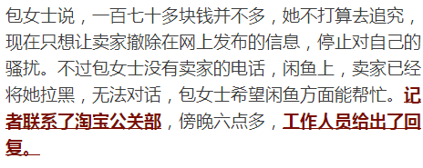 關于安全鏈的真假,以及為什么同一個賣家會有多個賬號,淘寶方面沒有回復。包女士向我們反饋說,閑魚方面已經聯系她,說是封停了賣家的所有賬號,出售她孩子的信息,已經搜不到了。