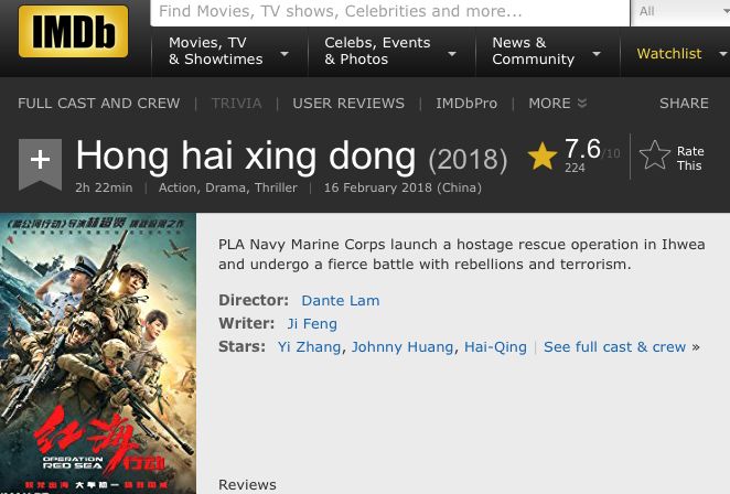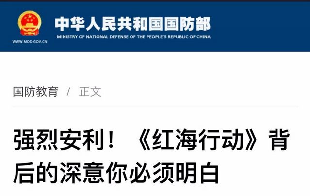 就連中國(guó)國(guó)防部也為它強(qiáng)勢(shì)“打call”,在其官網(wǎng)轉(zhuǎn)發(fā)一篇名為《強(qiáng)烈安利!〈紅海行動(dòng)〉背后的深意你必須明白》的文章。