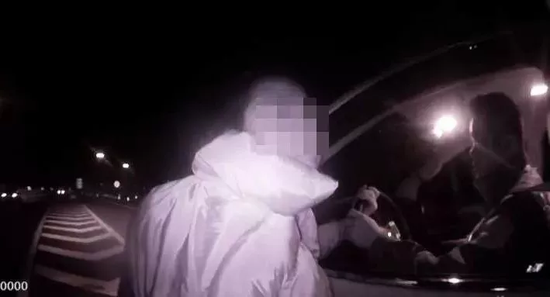 民警打算上車阻攔時(shí),張某飛速跑來(lái),從車窗內(nèi)伸手拉住警車方向盤(pán)。