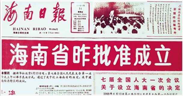 1988年4月14日,海南日?qǐng)?bào)刊發(fā)海南省批準(zhǔn)成立的新聞。本報(bào)記者 何 偉攝