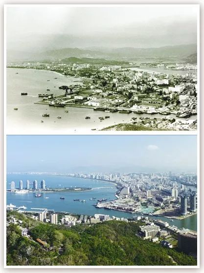 拼版照片為在三亞市鹿回頭景區(qū)鳥瞰三亞市景今昔對(duì)比(上圖為1991年2月新華社記者姜恩宇攝,下圖為2018年4月4日新華社記者郭程攝)。 新華社發(fā)