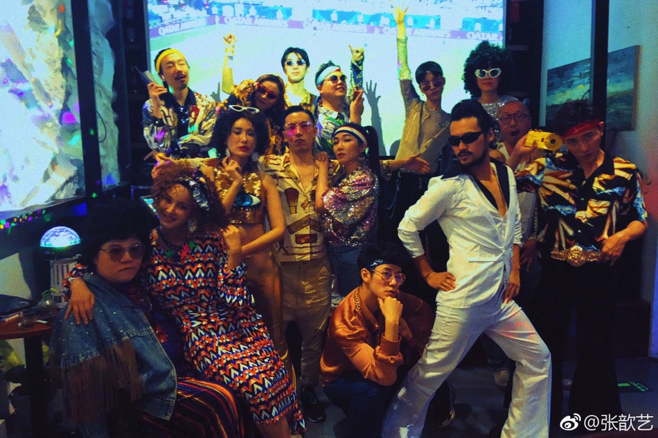 新浪娛樂訊 3日,張歆藝在微博曬出party照,并配文:“復古disco趴梯,我男人為了冠軍是有多么拼?!闭掌?,張歆藝與袁弘領(lǐng)銜,眾人都是上世紀80年代舞廳disco復古風的打扮,群魔亂舞的畫面有點辣眼。