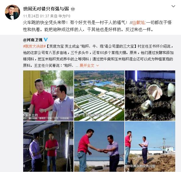 網(wǎng)友“世間無對錯只有強與弱”評論說:火車跑的快,全憑頭來帶!有個好支書是一村子人的福氣!