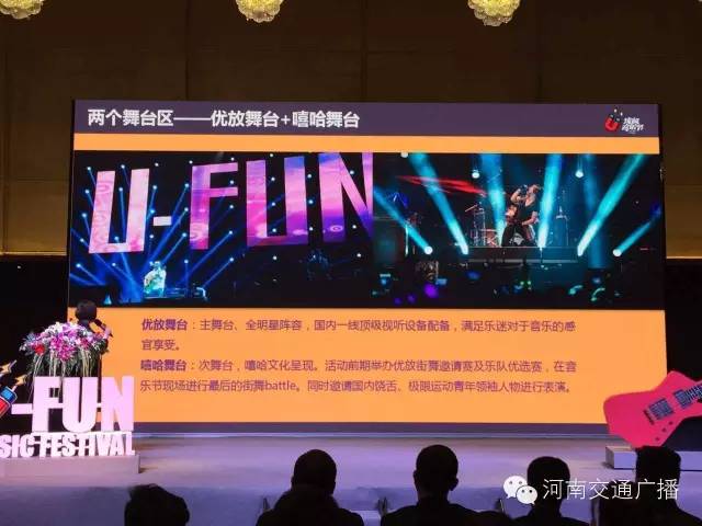 2016河南U-Fun優(yōu)放音樂節(jié)由河南電視臺都市頻道、FM104.1河南交通廣播共同主辦,新媒體平臺文藝FUN負責承辦。