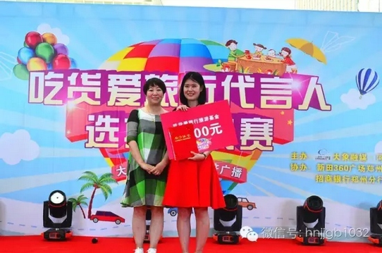 獲得第一名的選手成功簽約《吃貨愛旅行》成為代言人,由河南經(jīng)濟(jì)廣播副總監(jiān)欣悅女士上臺進(jìn)行了頒獎(jiǎng)儀式。