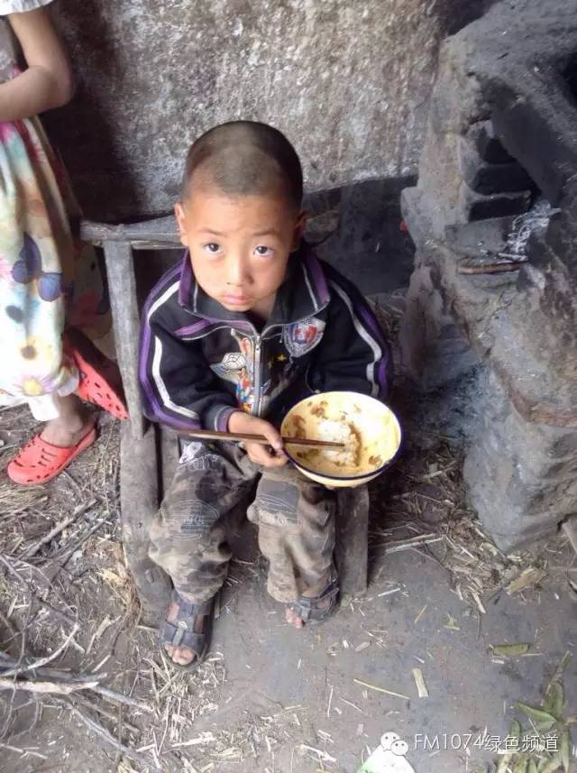 去的時(shí)候正趕上他們吃午飯,這位小朋友吃的是米飯,跟家人吃的不一樣。這碗米飯是鄰居送過來的,因?yàn)榧依锔F,幾乎沒有錢去買米,能吃上米飯對他們來說是件很奢侈的事情!
