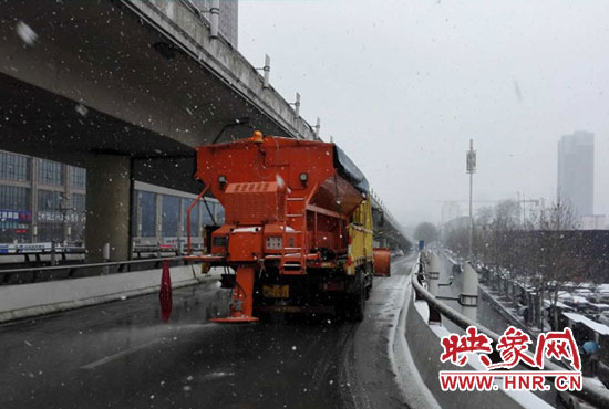 “我們一直在邊下邊清,保障市民通行順暢安全。”管理處一位工作人員說,“城市道路高架橋上匝道受低溫影響極易結(jié)冰,我們根據(jù)市除雪辦要求,重點保障交通樞紐,目前正在對立交橋匝道進行少量融雪劑撒布作業(yè),同時配合雪滾車,最大限度的保障道路通行。”