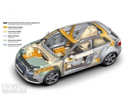 “輕量化”之于奧迪,已然成為品牌精髓所在,截止2011年已有70萬輛裝備了AFS輕質(zhì)車架的奧迪汽車駛下生產(chǎn)線。全新一代奧迪A3相比老款的減重達(dá)到了80千克,首當(dāng)其沖的就是采用了復(fù)合材料車架,車架型材包括了奧迪擁有自主知識產(chǎn)權(quán)的:超硬鋼、先進(jìn)高強度鋼、高強度鋼、低碳鋼以及鋁板。這些不同材料通過多種連接方式構(gòu)成了強度大幅提升的車身,同時重量下降了18千克。而大眾集團(tuán)最新的“MQB”橫置發(fā)動機模塊化平臺則能夠幫助奧迪A3進(jìn)一步減輕重量,比如A3使用的前輪鋁制副車架就帶來了6千克的減重效果。