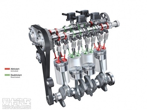 幫助奧迪在原有動力基礎(chǔ)上降低油耗的,主要包括發(fā)動機啟停技術(shù)、能量回收技術(shù)以及全新的全車智能熱管理。除此之外還加入一項行駛中“閉缸”技術(shù):此技術(shù)應(yīng)用在大眾集團(tuán)全新代號為EA888的直列4缸TFSI發(fā)動機之上, 當(dāng)發(fā)動機正常運轉(zhuǎn)時,只要電控系統(tǒng)監(jiān)測到此時行駛狀態(tài)均勻且需求動力非常低的情況下,就會主動關(guān)閉中間兩個氣缸。具體的做法是通過改變凸輪軸的位置,使正時氣門停止打開,保持關(guān)閉狀態(tài)?;钊匀辉诟變?nèi)往復(fù)運動,但不進(jìn)行進(jìn)排氣和點火。通過電腦做到高度的精確同步后,達(dá)到減少油耗與排放的效果。由于此項技術(shù)剛剛推出,筆者也僅僅接觸到了1:1等比例模型,具體的技術(shù)細(xì)節(jié)、運行模式與實際效果將在日后的試駕中向大家展示。