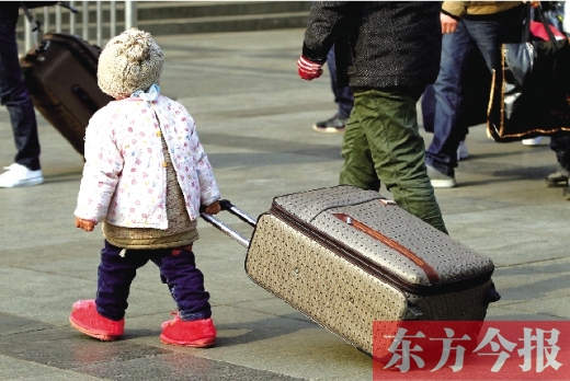 稍大些的,已經(jīng)懂得幫爸爸分擔(dān),小身板背著大行李,雖沉重,仍一路小跑,一路歡笑。
