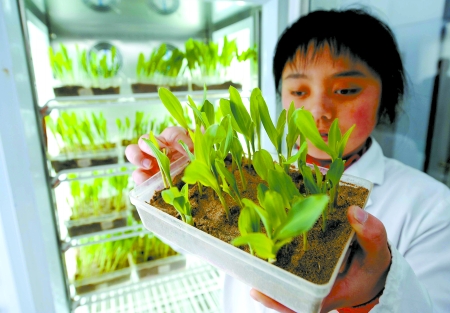 3月27日,??h種子站工作人員在查看光照培養(yǎng)箱里培養(yǎng)的種苗。近年來,??h實(shí)施“科技興糧”戰(zhàn)略,糧食生產(chǎn)連年獲得豐收。目前,??h100多萬畝小麥長勢良好。 新華社發(fā)