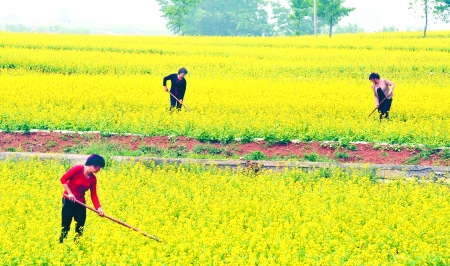 4月23日,嵩縣大坪鄉(xiāng)大坪村農(nóng)民在大白菜制種基地進行田間管理。今年該村與濟源一家農(nóng)業(yè)公司簽訂1000畝白菜制種合同,由公司提供種子和前期農(nóng)資用品,采取“公司+農(nóng)戶”種植模式制種,白菜種子從種植到收獲僅用2個月,每畝可收入2000多元。一村民說:“種一畝麥子需要8個月時間,對于我們這個干旱缺水的山區(qū),每畝收入不足600元,訂單培育白菜種子,真是太劃算了!” 記者 楊遠高 攝