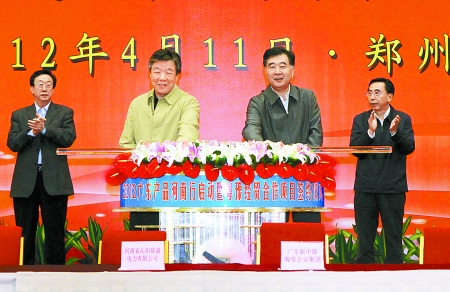 河南日報訊 (記者平 萍 田宜龍 張建新)4月的中原大地,春暖花開,生機盎然。11日上午,2012廣東產(chǎn)品河南行啟動暨粵豫經(jīng)貿(mào)合作項目簽約儀式在鄭州國際會展中心隆重舉行。率廣東省黨政代表團來豫考察的中共中央政治局委員、廣東省委書記汪洋,省委書記、省人大常委會主任盧展工出席并共同啟動廣東產(chǎn)品河南行活動。廣東省委副書記、省長朱小丹,省委副書記、省長郭庚茂分別致辭。