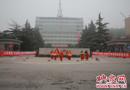 為了表達(dá)對(duì)滎陽(yáng)警方的感激之情,20日上午8時(shí)許,盧女士就和家屬一起來(lái)到滎陽(yáng)市公安局大門口,敲鑼打鼓地舉著兩面錦旗表示感謝。映象網(wǎng)記者看到,在公安局大門兩側(cè),有兩個(gè)紅色條幅格外顯眼,“千里奔波,心系群眾,滎陽(yáng)警方跨省解救被困男孩”,“心存感激,無(wú)法表達(dá),孩子父母跪謝滎陽(yáng)人民警察”。