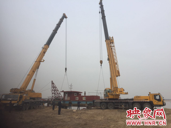 映象網(wǎng)訊(記者 王文凱 通訊員 王延喜)這邊聯(lián)合執(zhí)法人員剛剛將埋藏在地下的管道挖出銷毀,那邊,采砂者稍加修復(fù)就又重新在“母親河”腳下非法采砂。而對(duì)于游弋在黃河上的采砂船,執(zhí)法人員更是束手無策。針對(duì)這種情況,近日,滎陽市地方海事處聯(lián)合多個(gè)部門,動(dòng)用兩輛百噸大吊車,將兩艘非法采砂船“根連株拔”。