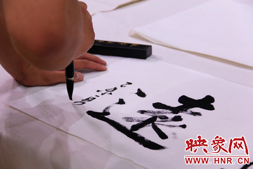 高校學(xué)生代表現(xiàn)場(chǎng)書法展示(丁靚琦/攝)